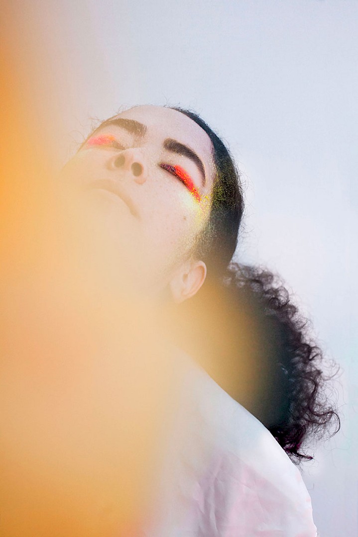 Il s’est agi de re-photographier des portraits de femmes en utilisant l’objet qui est devenu le (triste) symbole de notre époque de consommation de masse : le sac plastique. En plaçant les sacs à l’effigie de diverses grandes enseignes à des distances plus ou moins éloignées de l’objectif de mon appareil photo, ils sont venus former des filtres colorés sur les visages féminins. La consommation et le consumérisme – incarnés par leurs allégories de plastique — apparaissent ainsi dans (C2H4)ⁿ * tant comme des éléments prenant pleinement part à la construction de la beauté et la féminité et venant colorer et émailler les portraits (comme pourraient le faire un produit de maquillage ou un accessoire) que comme des voiles ou des masques venant cacher en partie l’accès au visage (et à la beauté) des modèles. Le rôle de la consommation s’exprime ainsi de manière binaire et paradoxale, à la fois comme élément prenant pleinement part à la construction de la beauté que comme élément venant former un voile ou une interférence pour y accéder.