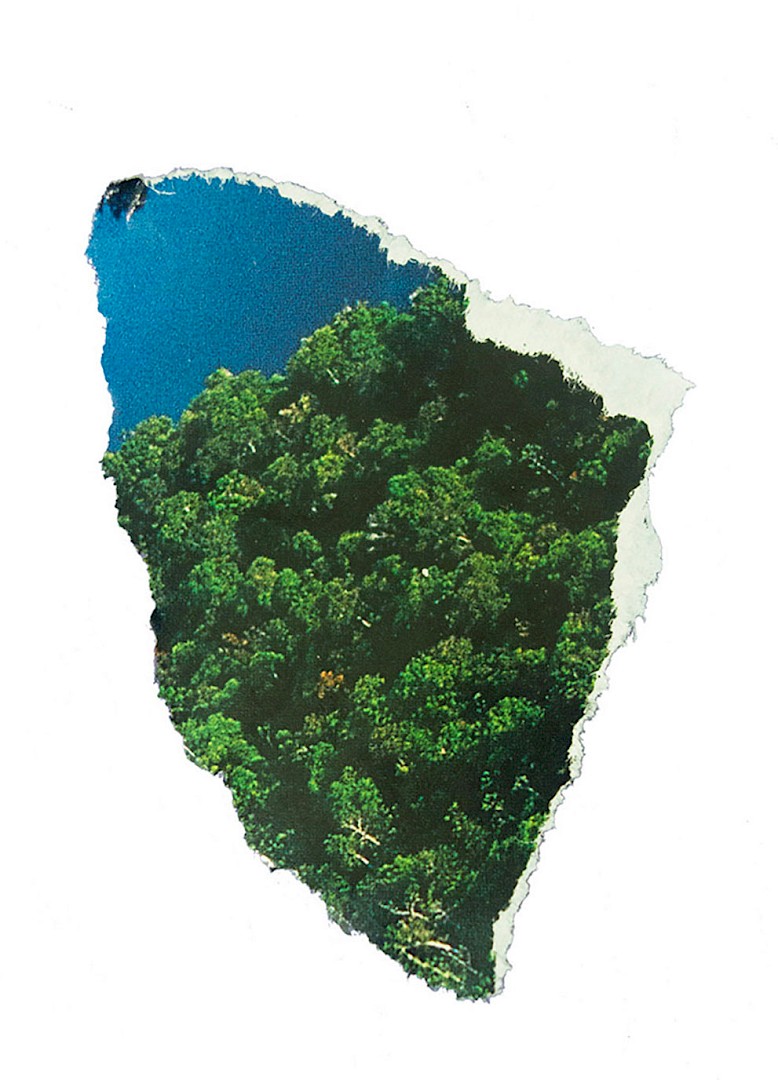 Par un processus de dé-construction d’images — images vernaculaires et issues de la presse, ainsi que des photographies réalisées sur le territoire amazonien —, ensuite re-visitées, plastiquement ou ré-insérées dans un flux de collages et montages, ce travail joue volontairement sur une présentation de l’Amazonie comme une image fantasmée et construite. Il s’est agi de ramener ces vues — d’une nature tropicale, parfois idéalisée ou même stéréotypée — à leur statut d’image même, de les considérer comme des surfaces plastiques, des éléments graphiques.